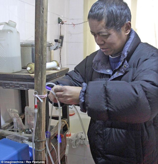 Китайский крестьянин живет 13 лет на самодельной искусственной почке, которую сделал сам.