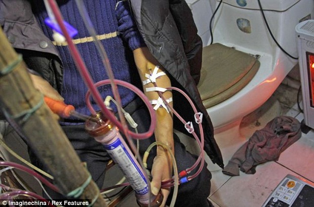 Каждая процедура по диализу крови, проведенная дома в туалете, обходится жителю китайской глубинки в 60 юаней, что в 8 раз дешевле, чем аналогичная процедура в клинике. Всякий раз Ху Сонвень подвергает себя риску — двое его коллег по несчастью погибли после сооружения и использования подобных домашних искусственных почек.
