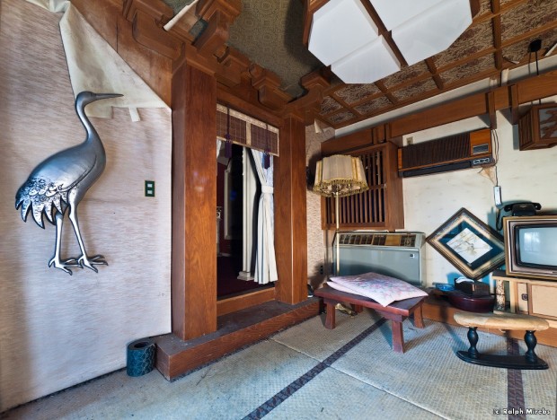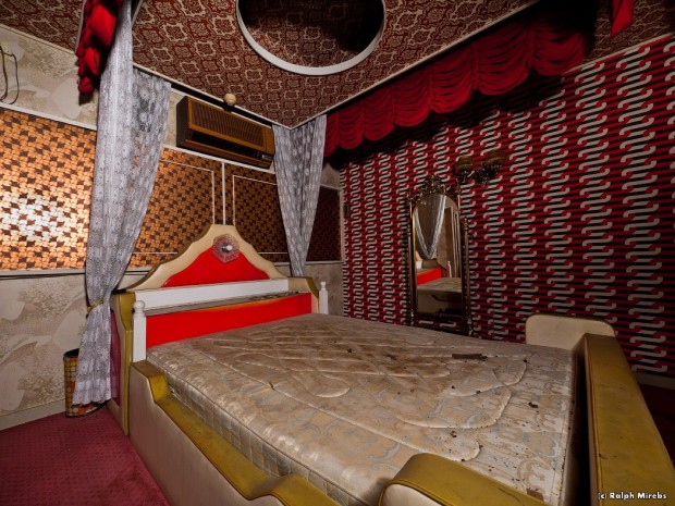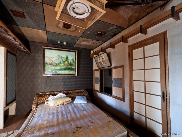 И вновь я возвращаюсь к теме заброшенных японских отелей, на этот раз небольшого мотеля. Двухэтажное здание на десять номеров, на первом этаже большой гараж из каждого бокса которого идет узкая лесенка непосредственно в номер. Таким образом, центрального зала здесь нет, а в номере можно остановиться и жить совершенно не встречаясь с другими постояльцами. Отель был открыт в 1973 году, закрыт в 1997-ом, и самое интересное в нём – оформление номеров. Обычно, такой необычный декор характерен для специальных отелей для занятия сексом, которых по всей Японии великое множество. Комнаты в таких лав-отелях сдаются по часам и только парам, но в описываемом месте их можно было снять как на сутки, так быть при этом в одиночку. Цены умеренные – до 9000 йен в день и 2000 йен за пару часов секс-отдыха.