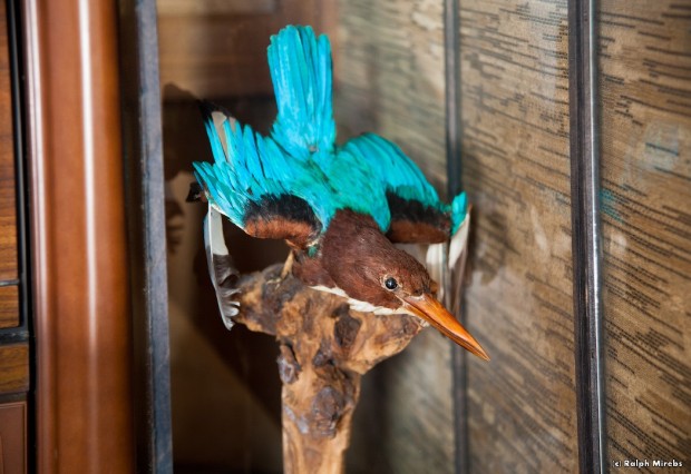 Ещё один номер с интерьерными элементами и чучелом птицы. Двери справа ведут в небольшую ванную комнату, туда же можно открыть и окно из комнаты.