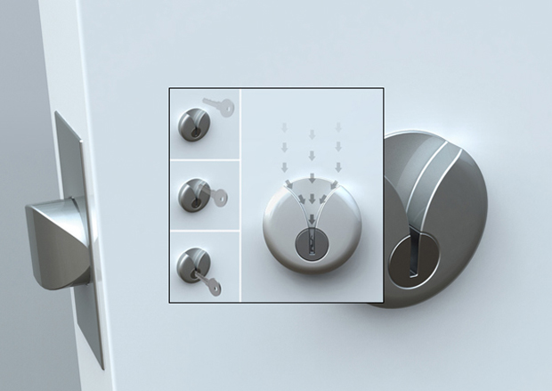 Все гениальное просто. Даже очень просто. По крайней мере, в этом случае. Те, кому хоть раз приходилось «промазать» ключом мимо замочной скважины, должны понять. Если отсутствие в подъезде электричества, усталость или какие-либо другие объективные причины не позволяют разглядеть маленькую щель – концепт «V Lock» точно не помешает.