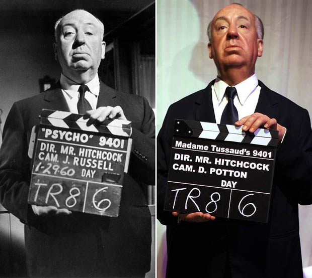 Великий режиссер Альфред Хичкок в «Зале славы» музея восковых фигур мадам Тюссо.